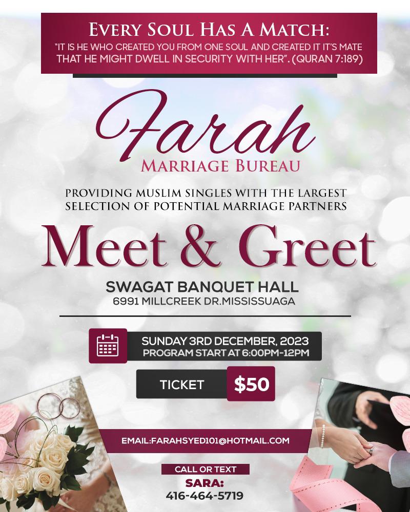 Farah Matrimonial is a trusted name for single Muslims for over twenty years. The organization is found by Farah Syed who is well reputed for successful match-making for hundreds of Muslims. Our matrimonial service extends to Muslims from Canada, the Middle East, and Europe. The clients can use the online system to create their profile and the interactive platform of our site will help in meeting a perfect spouse for you. We provide our services for freshers that have never married before, to the divorcees, and the widowers as well.